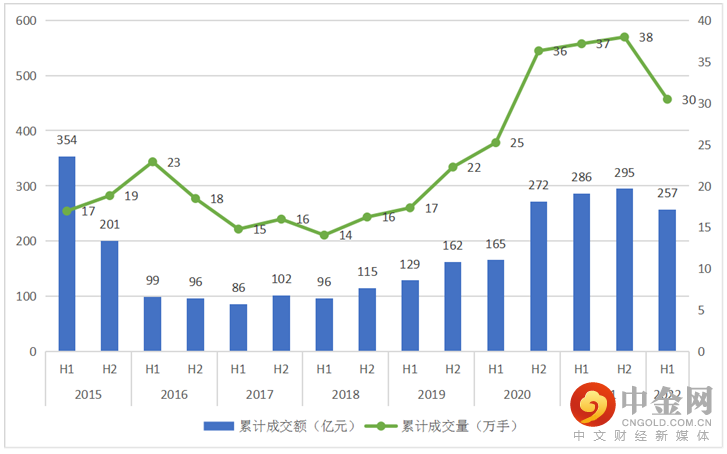 图1:2015-2022年内地期货市场成交量和成交额