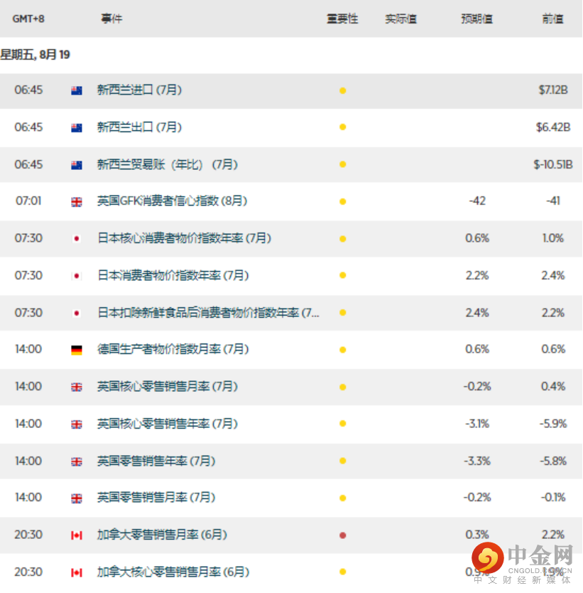美元继续获得支撑。美联储官员Daly发表强硬评论,声称9月加息50或75个基点“合情合理”。