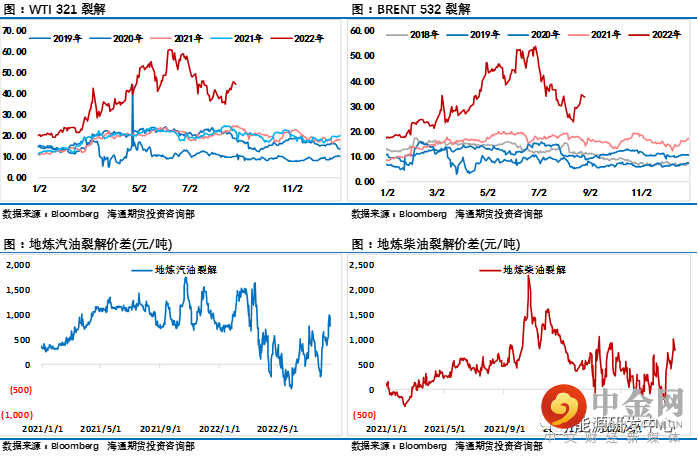 而随着WTI原油已经低至85美元,供需层面后续是否会进一步导致油价下行也成为接下来市场需要关注的因素。最新一期的EIA周度报告显示美国原油、成品油均大幅降库,远超市场预期,数据显示截至8月12日的一周,原油库存骤降710万桶,至4.25亿桶,预估为减少27.5万桶。另外美国上周汽油库存减少460万桶,更为重要的是美国汽油柴油消费数据都有所回升,这对之前对需求担忧情绪起到了很好的缓解,有助于油价短期的反弹。另外可以看到美国全口径库存仍处在多年来同期低位,这意味着原油市场累库压力可以改变市场预期对油价施加压力,但还不至于导致油价出现崩盘大跌。另外对于供应端要关注2个因素,一个是近期市场高度关注的伊核协议最终结果,市场在等待美国的最终回应,到目前为止美国还没有给出答复;另外一个就是要关注未来几个月随着欧盟禁运俄罗斯石油对供应端的后续影响。而需求层面来看仍不宜乐观,全球经济下行压力明显,全年原油需求预期已经是一再下调,近期中国成品油市场汽柴油价格出现了强劲反弹,地方炼厂炼油毛利触及年内高位,但并没有刺激炼厂加大加工量, 上周地炼开工还出现了一定下滑,中国市场需求恢复进展缓慢,对于增加成品油供应炼厂方面还是比较慎重。不过近期中国欧美等地裂解利润反弹还是有助于油价回稳。虽然之前欧洲天然气价格飙涨对油价提振有限,但随着其持续刷新历史记录,如果极端气候持续,不排除最终会推涨油价。