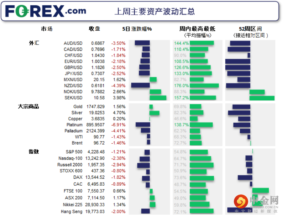 澳元是上周最弱主要货币,受到疲弱中国数据与美元跟随强硬美联储官员评论走高的夹击。