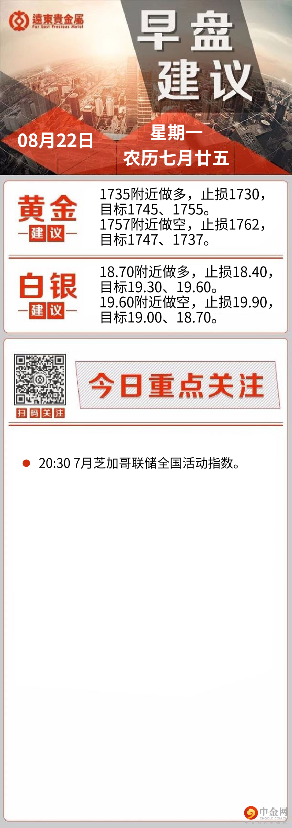此外,美国上周初请失业金人数温和下降,暗示在利率上升的背景下,就业市场动能有所减弱。虽然最近几周初请失业金人数有所上升,但仍低于27-30万人的水平。经济学家认为,27-30万人的水平意味着就业市场出现实质性放缓。美联储为抑制通胀而采取的激进货币紧缩政策导致需求放缓,对利率敏感的房地产和科技行业企业一直在裁员。8月24日,美国将公布截至8月19日当周API和EIA原油库存变动,有望继续录得下降。8月24日将公布美国7月耐用品订单月率初值,有望进一步好转。此外,8月24日,明尼阿波利斯联储主席卡什卡利参与一场会议的问答环节,也需引起注意。
