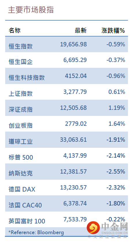 美国10年期债息升破3厘关口,拖累美股周一显着受压,道琼斯工业平均指数挫643点或1.91%,报33063点;美国标准普尔500指数跌2.14%,报4137点;纳斯达克综合指数急跌2.55%,报12381点。避险情绪升温,美汇指数升0.6%,但利淡黄金表现。
