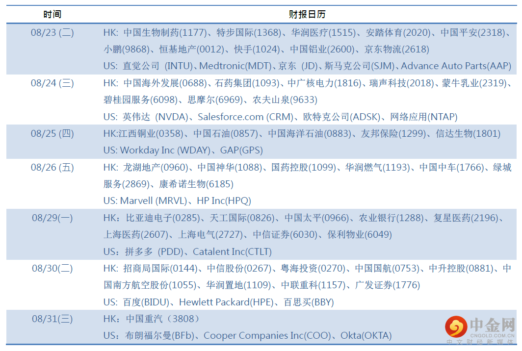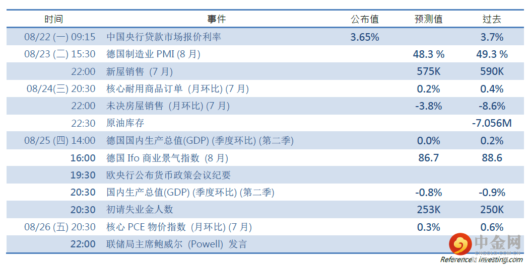 现货黄金延续跌势,现货黄金下跌0.37%至1740.96美元/盎司,跌至7月28日以来新低。鉴于黄金以美元计价,同时与美国实际收益率呈负相关关系,因而投资者后续仍需聚焦美国通胀情况以及美元的情况。本周将召开的杰克逊霍尔全球央行年会,美联储主席鲍威尔或将于会议上对下半年货币政策倾向作出暗示,投资者需警惕波动性大增的可能。