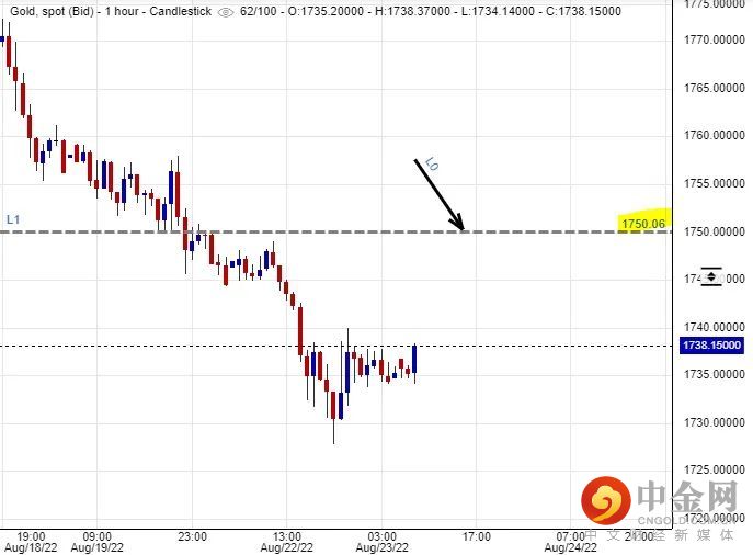 可以部署在$1,750美元左右建立淡仓盘,短线看淡金价一线至$1,722美元水平后止赚,止损在$1,758美元。