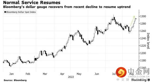 这波涨势看来还有很大空间,美联储主席鲍威尔本周晚些时候在杰克逊霍尔研讨会上发表的鹰派言论,可能会加剧美元的涨势。