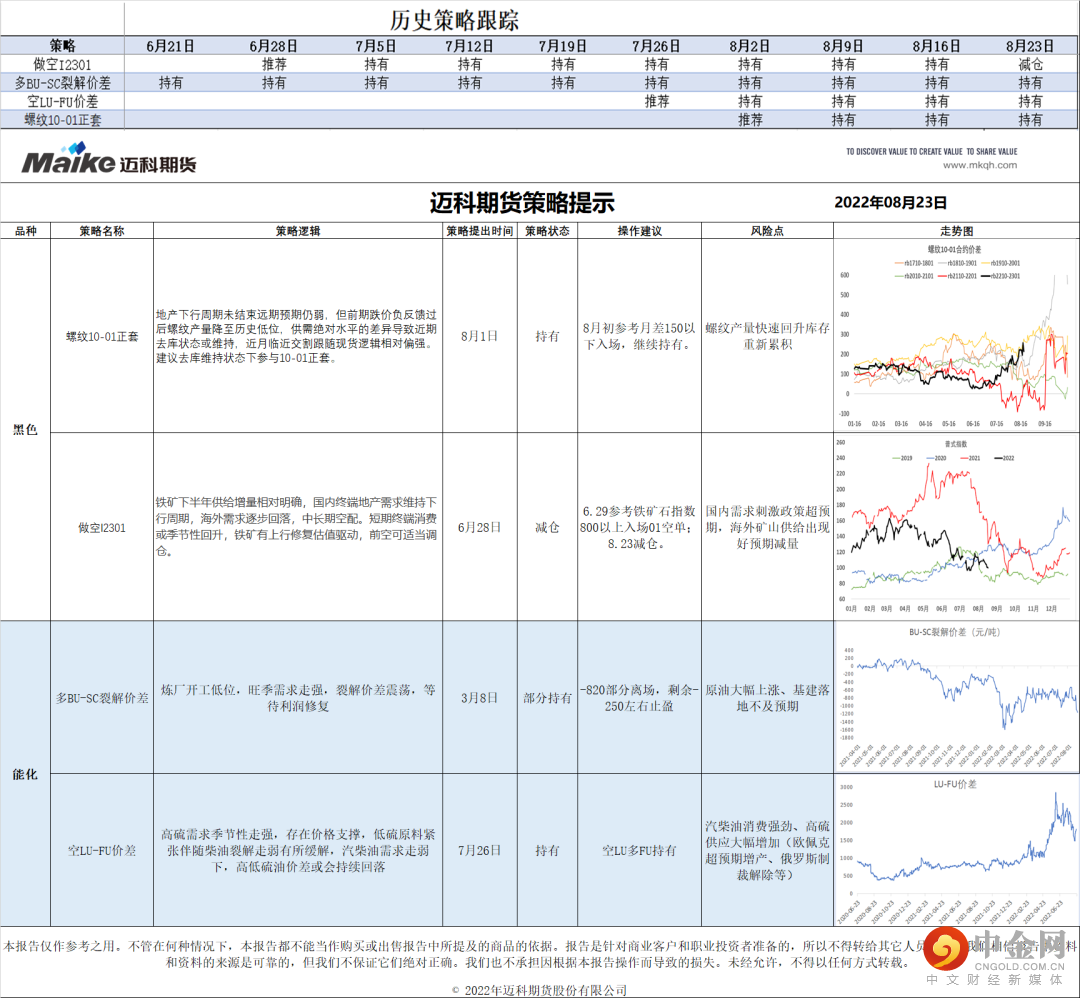 迈科期货策略提示 | 2022.08.23