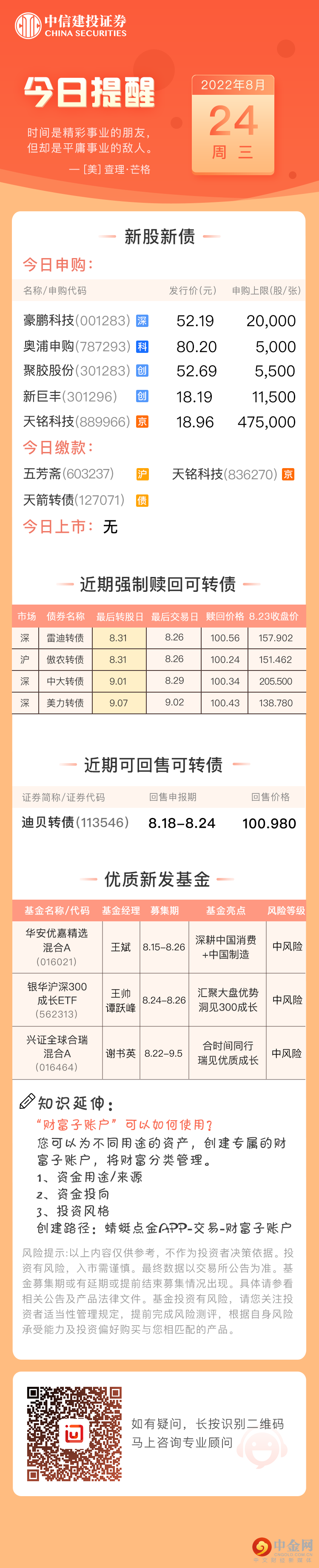 今日投资提醒(8月24日)