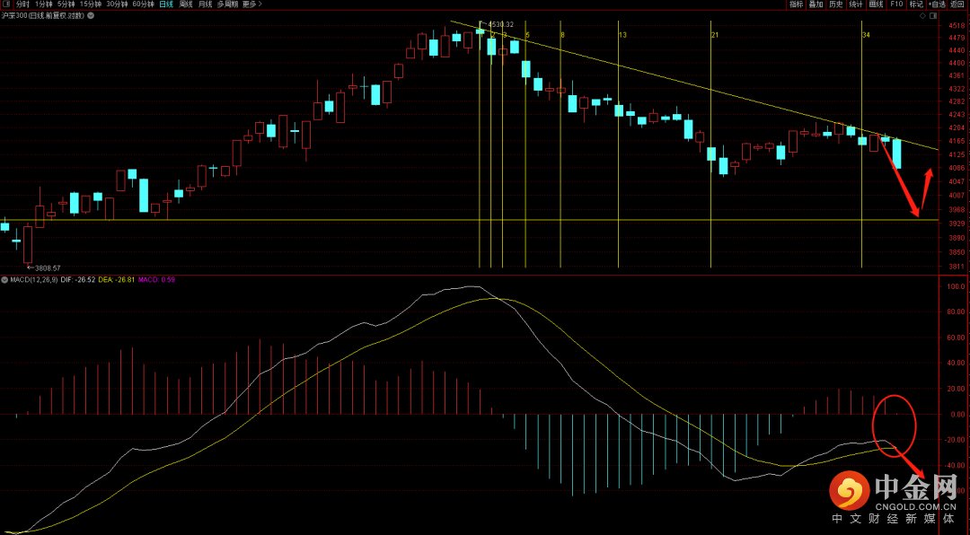 沪深300短期跌破了关键支撑,后续大概率会继续向上试探前期低点,而在日线macd量柱没有出现再次扩张之前大概率继续维持震荡下跌走势,从周期看大概率还需要一周左右的调整时间,关注月底可能出现的变盘结构。