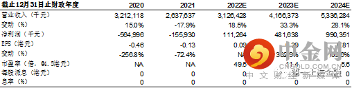 我们预计公司2022-2024年营业收入为31.3、41.7、53.4亿元,归母净利润为1.1、4.8、9.9亿元,公司自研游戏短期提高净利润率还需要时间,给予公司游戏12倍的PE估值,比游戏行业平均估值略微折让;考虑到目前公司IP衍生品业务正在快速发展阶段,市场空间潜力巨大,给予6倍的PS估值,对应目标价7.9港元,首次覆盖,给予买入评级。