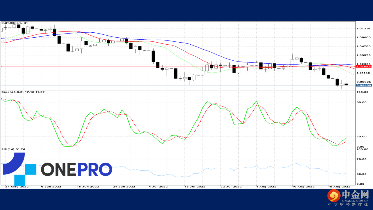 欧元区的日线技术线型中,长线的Alligator形成死亡交叉,表示长期来看欧元已经走跌,短线的KD已经走入低档钝化区域,长线与短线都是呈现空头走势,后续往往下挑战的机会很高。