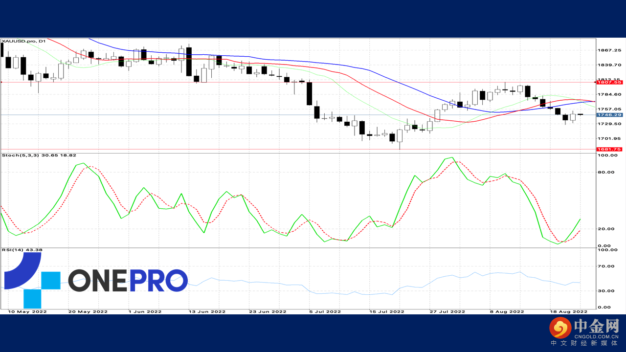 黄金的日线技术线型中,长线的Alligator从黄金交叉转为呈现纠结,表示黄金长线的整体走势呈现多头的格局已经被破,而短线的KD呈现黄金交叉,长线与短线都是多头格局,趋势依然成为强势多方。