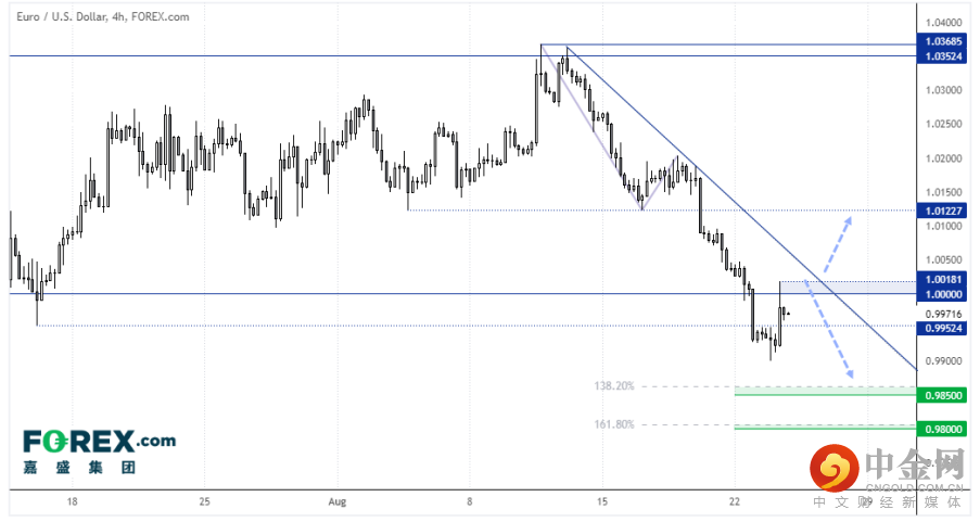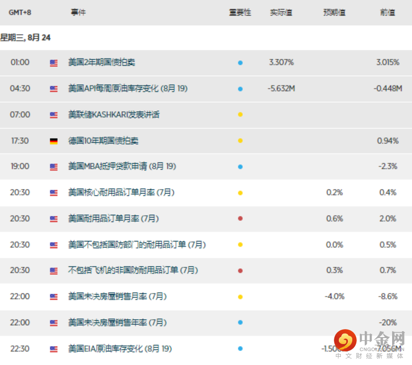 美元曾强力反弹,但现在因为疲弱PMI数据而走弱。在迎来周四通胀数据、周五晚间鲍威尔于杰克逊霍尔大会发表讲话,这两件关键事件之前美元或继续修正。