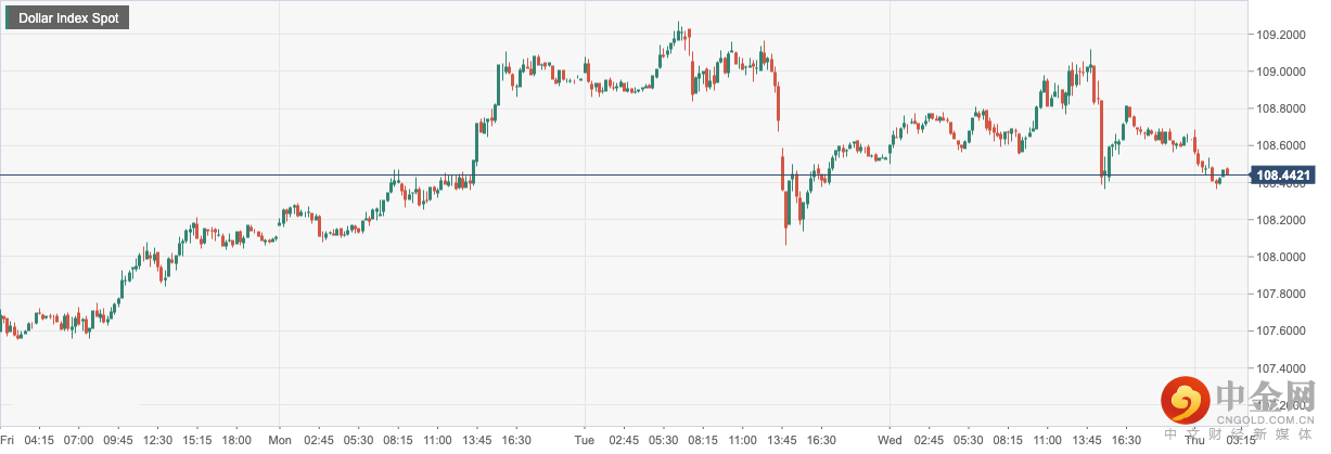 美元指数周三收盘小幅震盪后,今日开盘跌至108.44附近,因美国数据在耐用品订单及成屋销售签约上整体疲软,导致美元下行震荡承压。