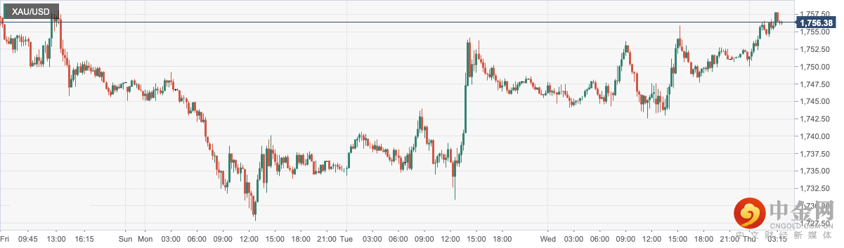黄金兑美元周三收盘大幅提振,今日开盘涨至1756.38附近,因市场对全球经济衰退的担忧挥之不去,吸引逢低买盘和避险买盘给金价提供支撑。
