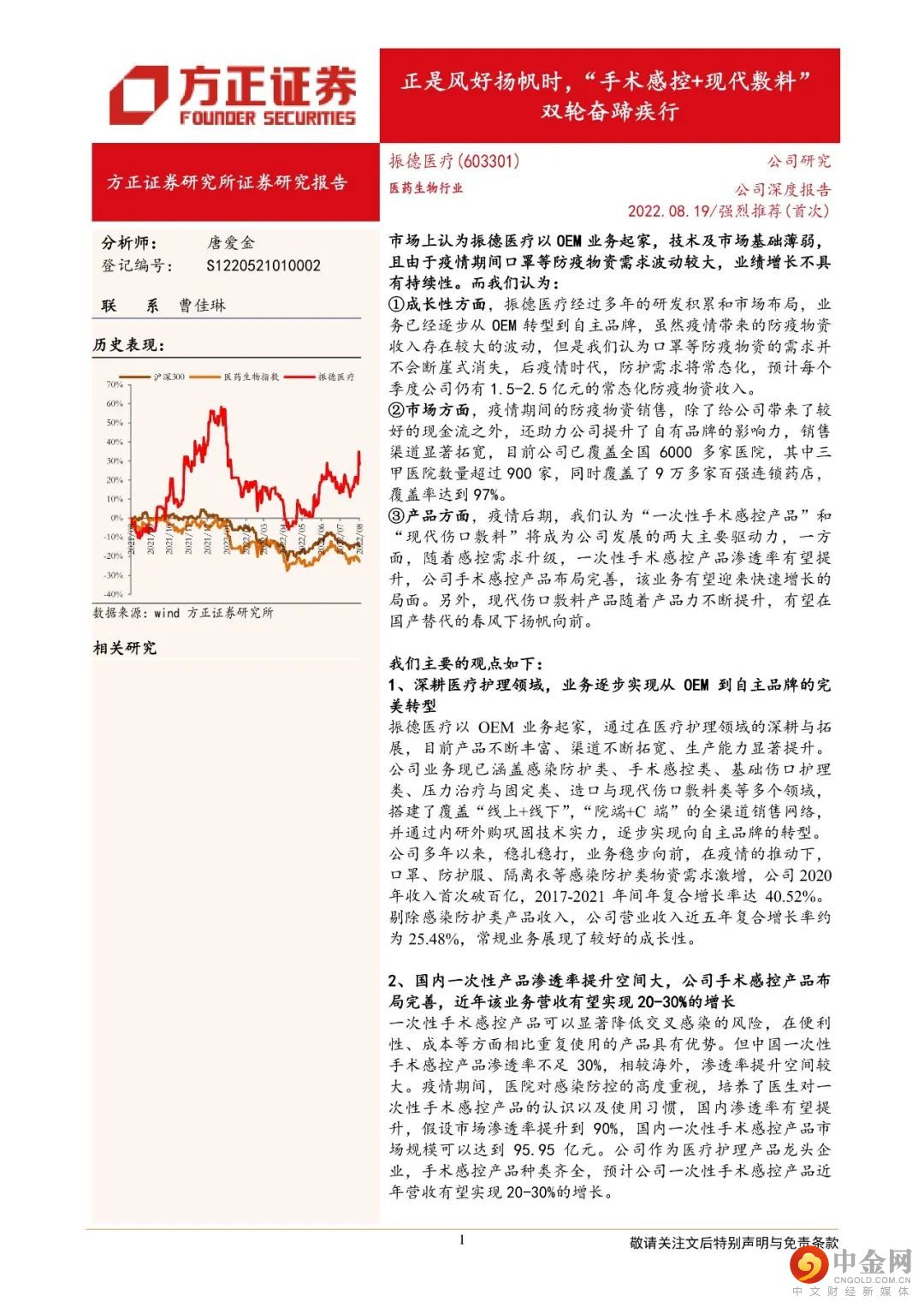 本文来自方正证券研究所于2022年8月21日发布的报告《振德医疗:正是风好扬帆时,“手术感控+现代敷料” 双轮奋蹄疾行》,欲了解具体内容。