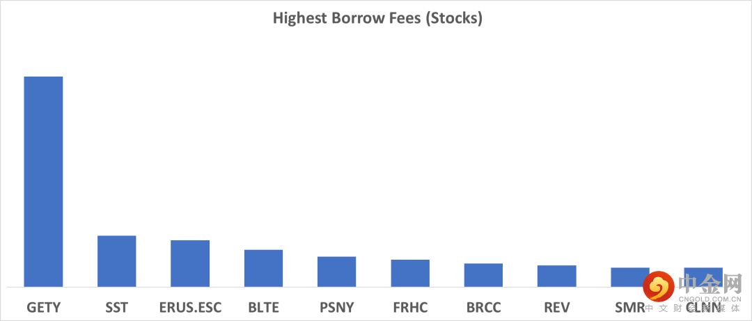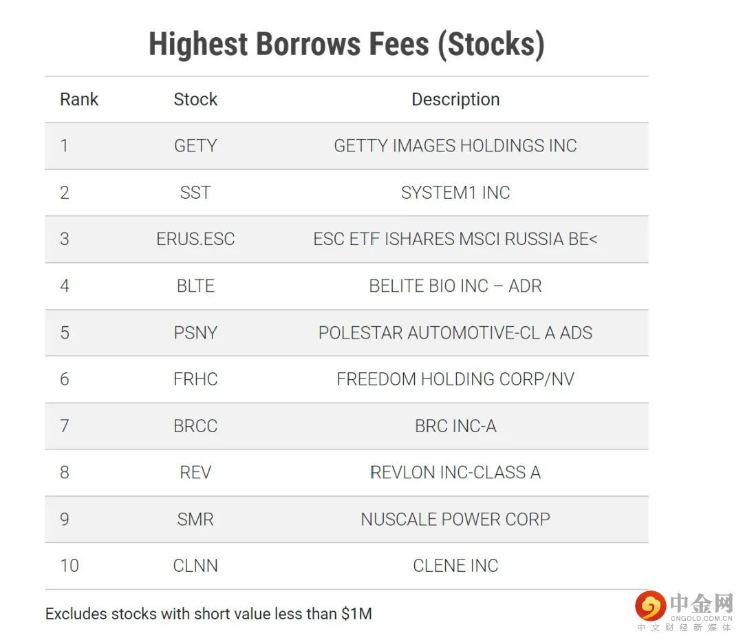 下表中列出的是2022/8/18具有最高借入费用的10个证券。