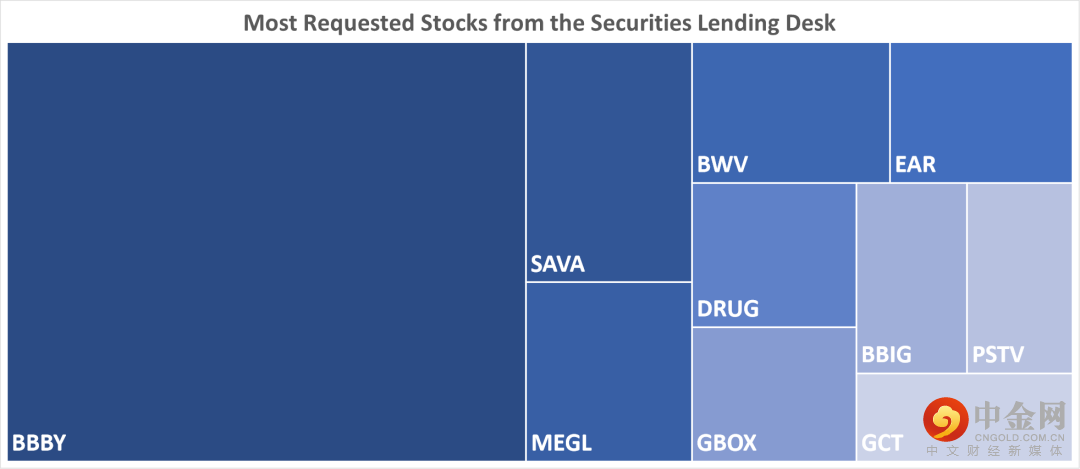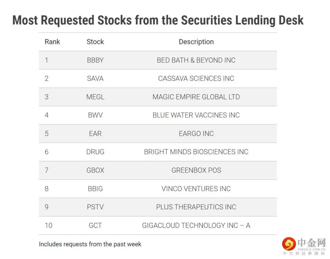 下表中列出的是2022/8/18借入需求最高的10个证券。
