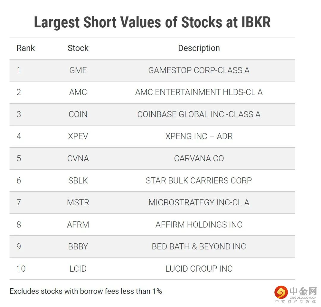 下表中列出的是2022/8/18具有最大做空值的10个证券。