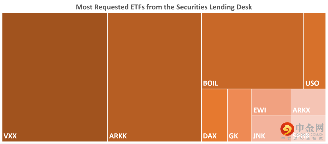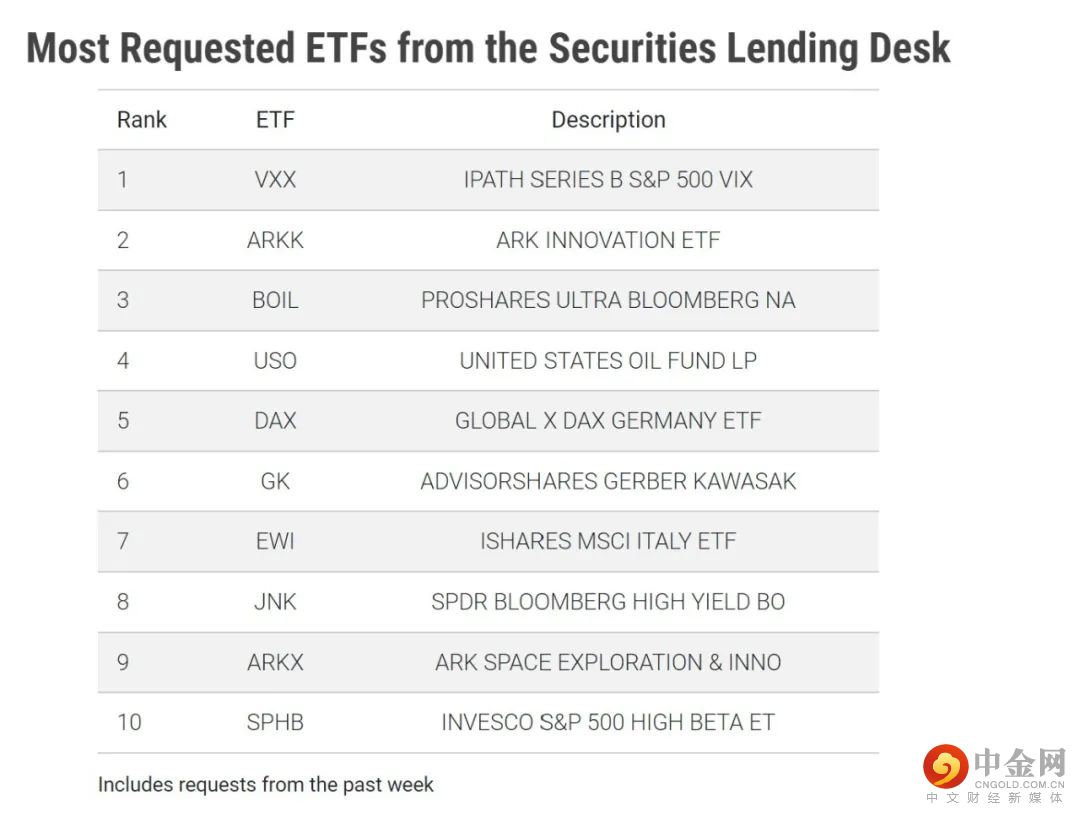下表中列出的是2022/8/18借入需求最高的10个ETF。