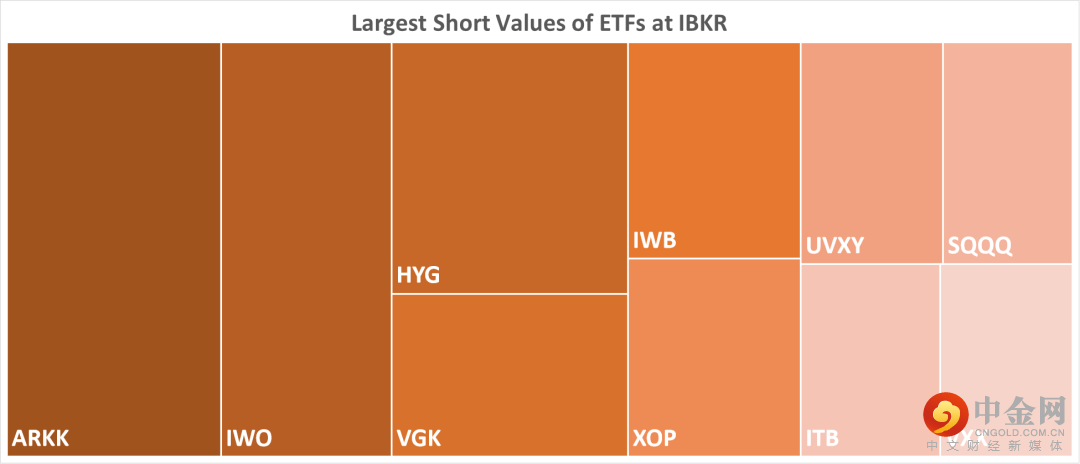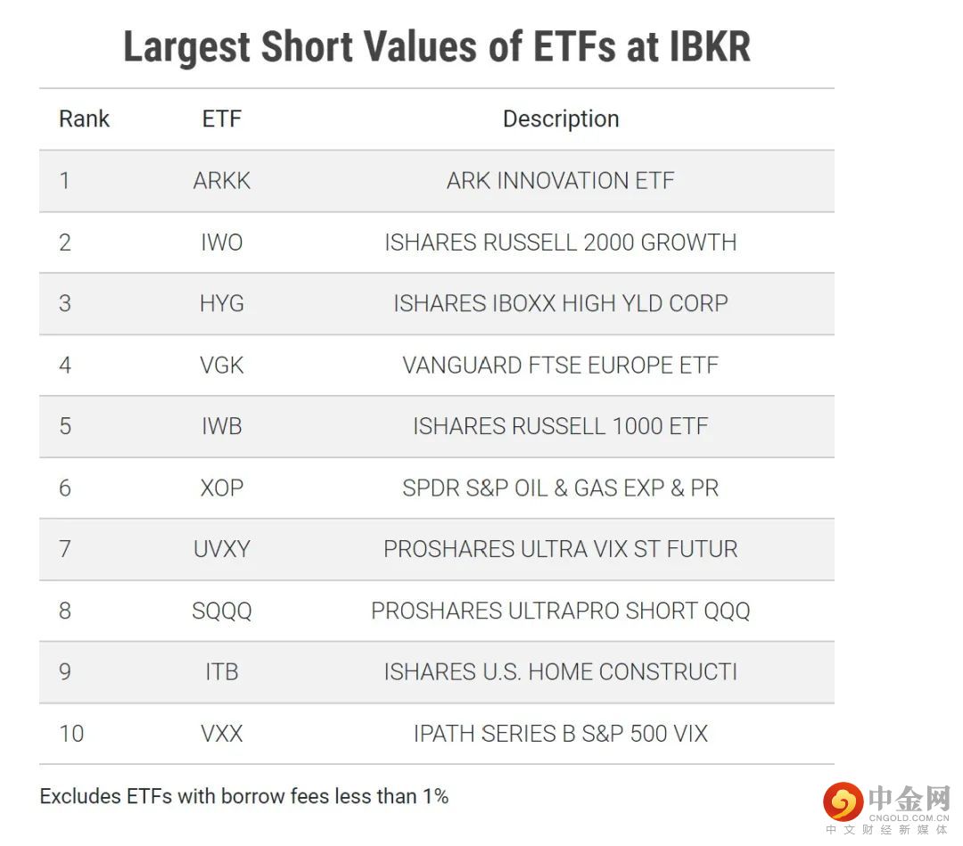 下表中列出的是2022/8/18有最大做空值的10个ETF。