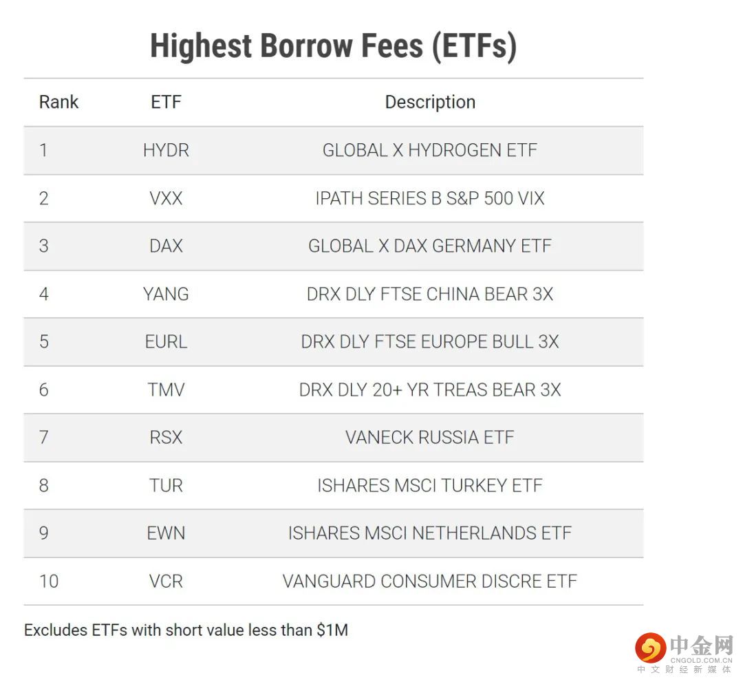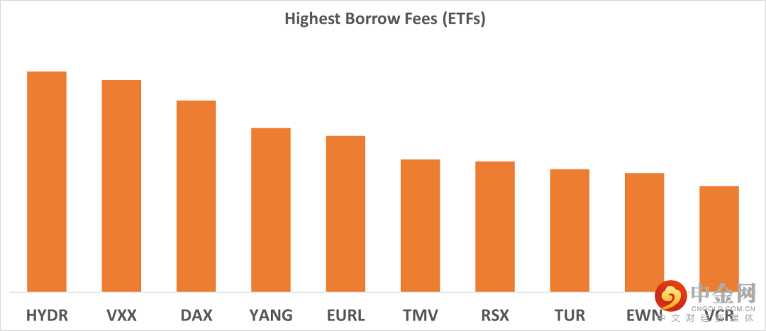 下表中列出的是2022/8/18具有最高借入费用的10个ETF。