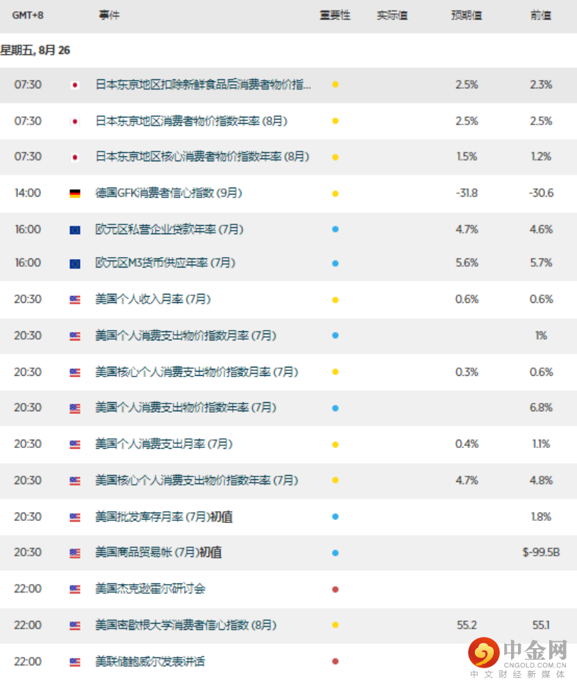 今天的主要经济事件是美国定于20:30发布的核心PCE与22:00的鲍威尔讲话。