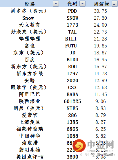 研讨会相关标的周涨幅榜