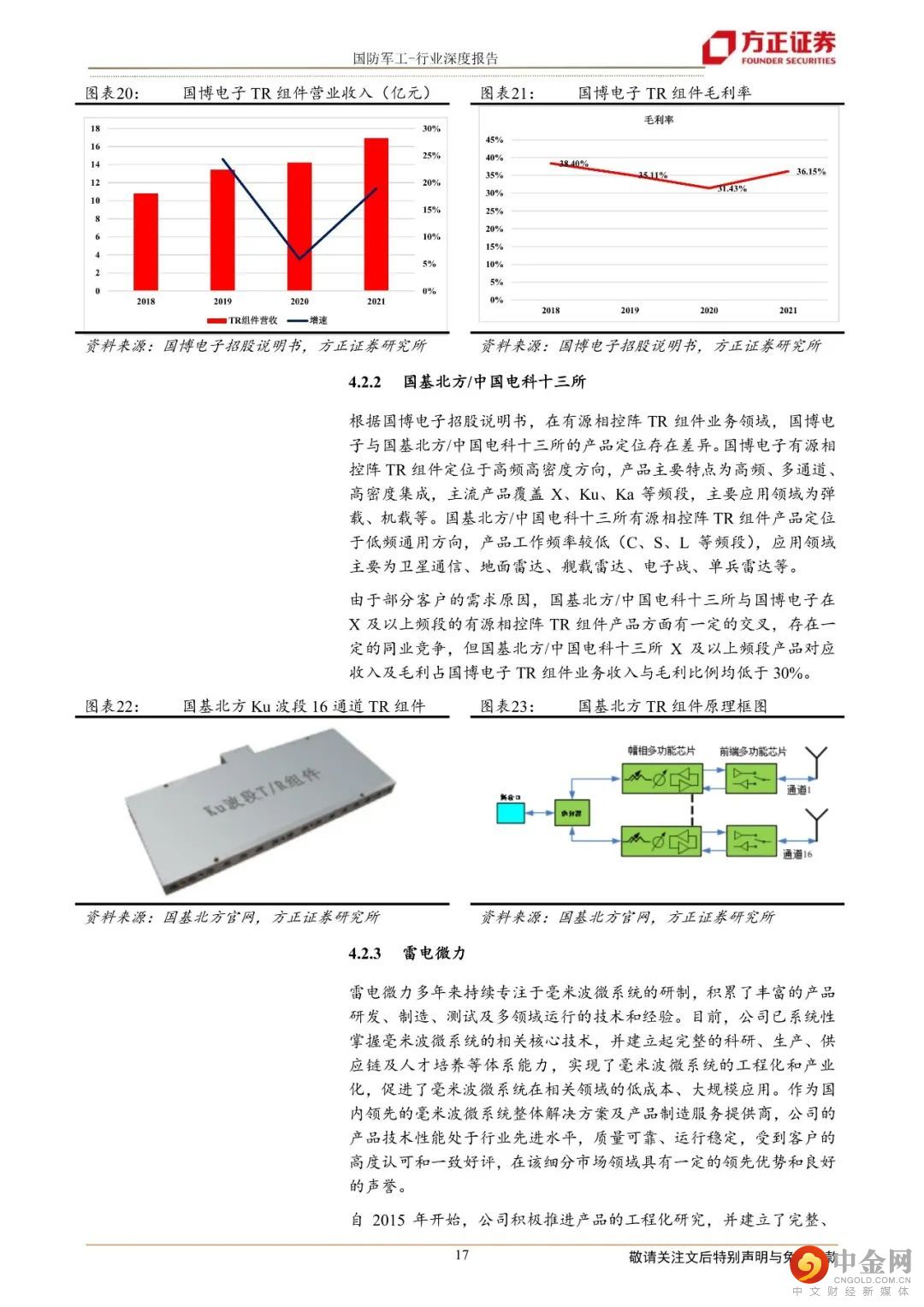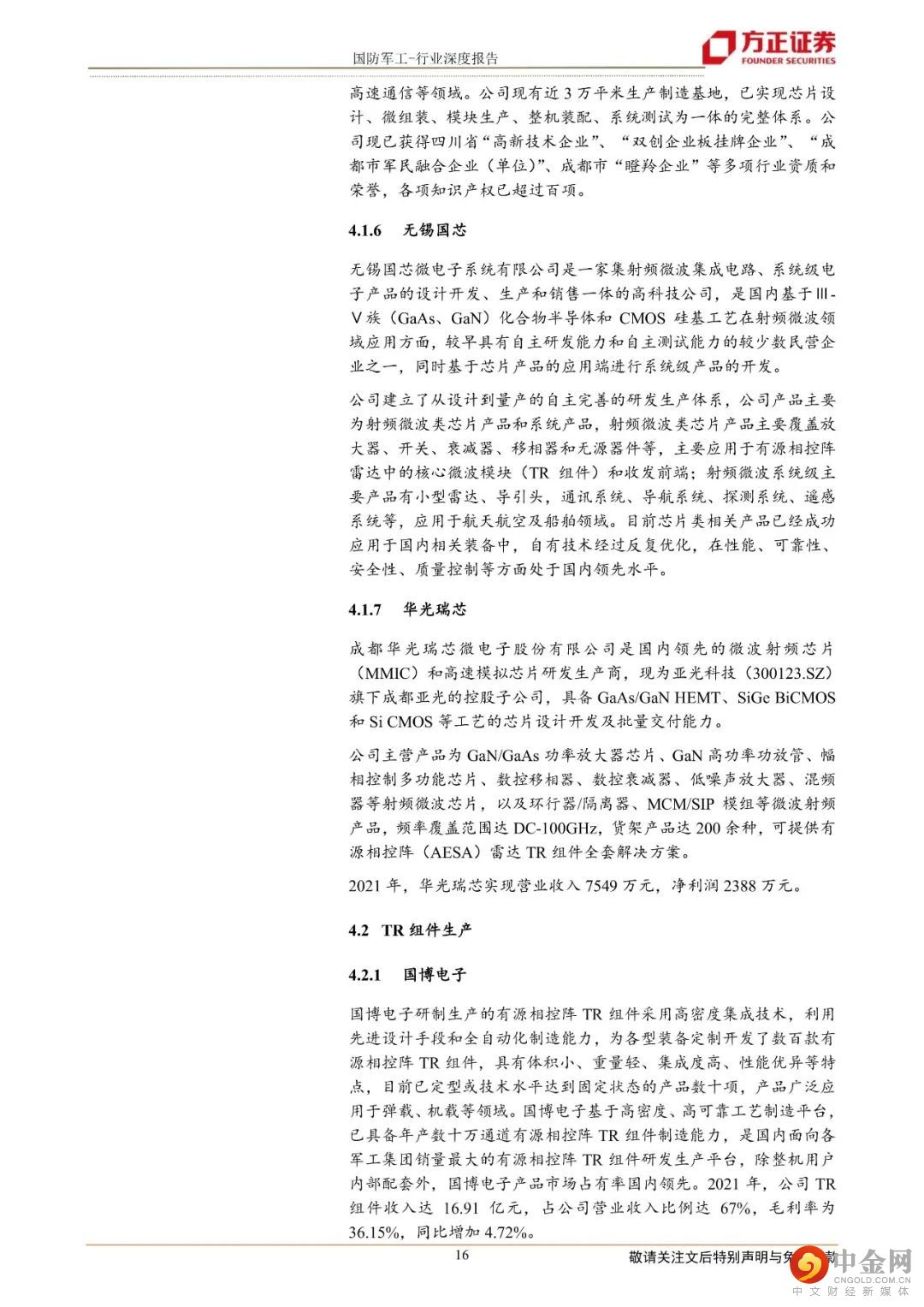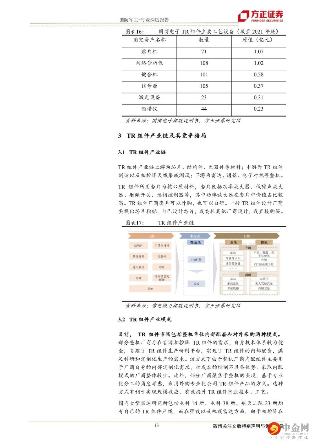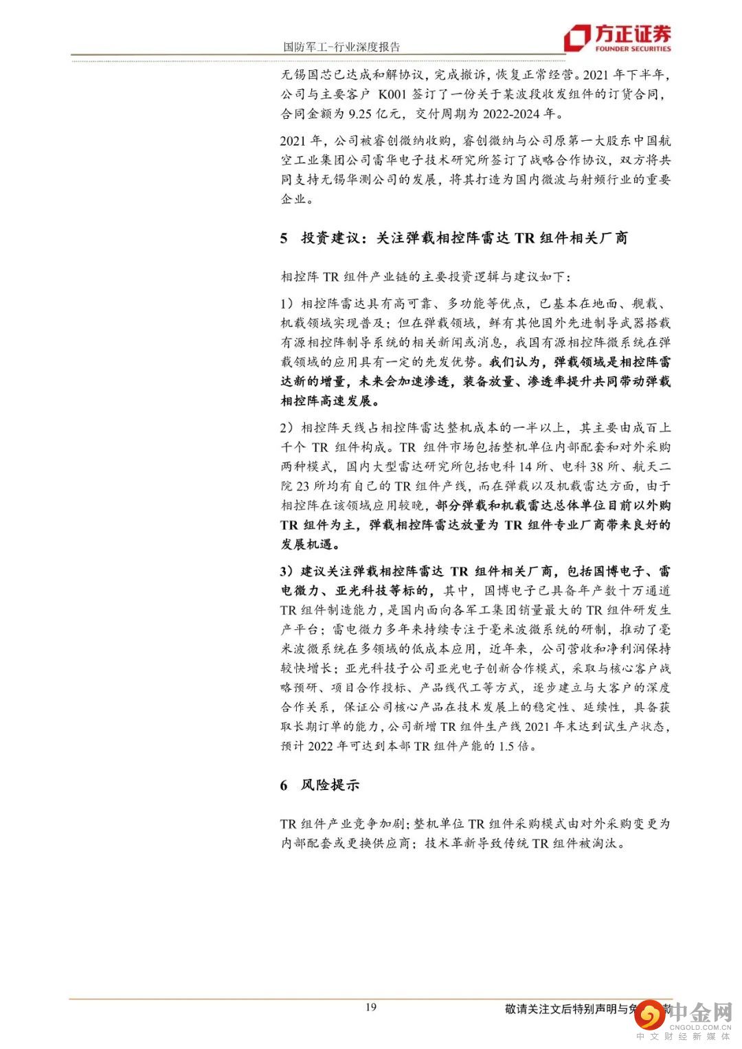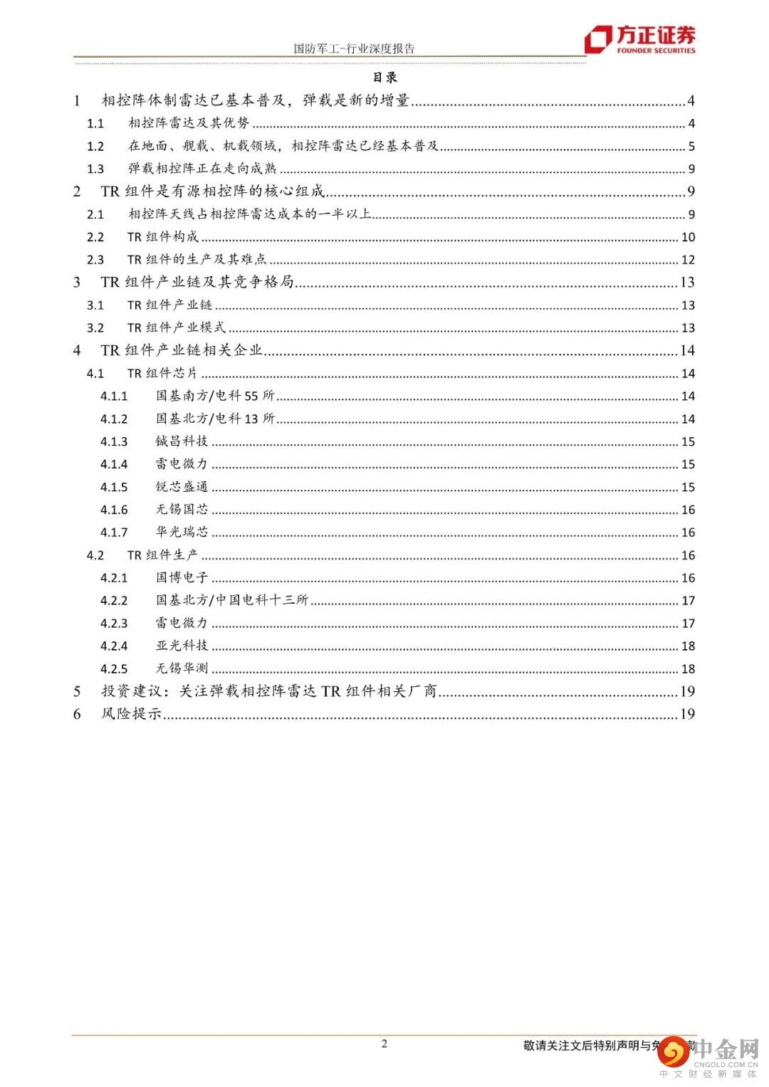 风险提示:TR组件产业竞争加剧;整机单位TR组件采购模式由对外采购变更为内部配套或更换供应商;技术革新导致传统TR组件被淘汰。