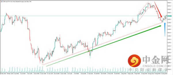 道指(US30)4小时图,股指从8月中旬高位滑落后仍然处于中期上升趋势线上方,夜间的美联储年会将奠定未来数周或数月的市场方向,交易者可参考AETOS资本集团的《每日汇评》获取最新资讯和分析:https://www.aetoscg.com/zh-au/market-commentary.html