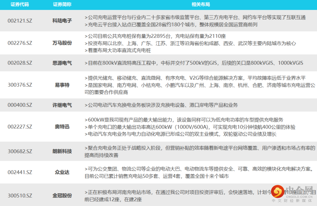 部分布局公路充电基建公司(Wind、金元证券公司制图)
