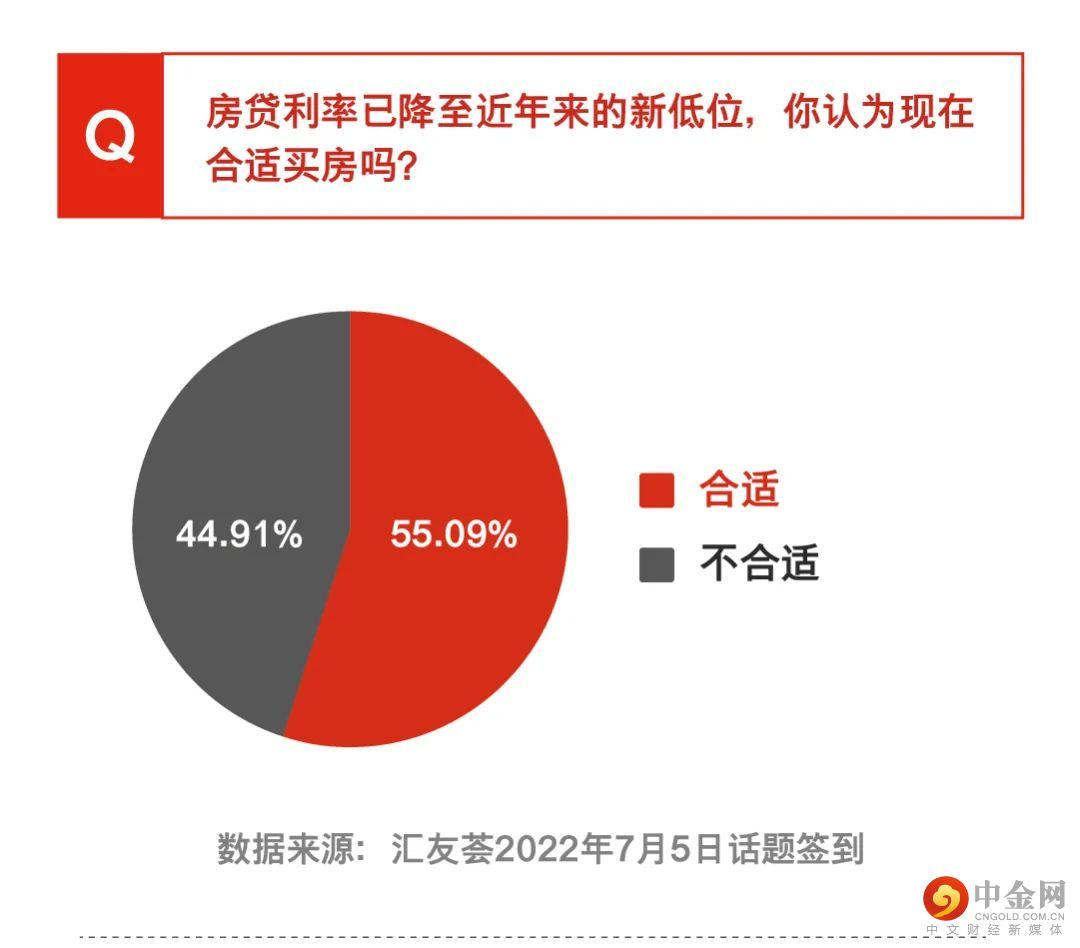 根据调查,有55.09%的受调查者表示当前行情,适合买房;然而有44.91%的受调查者表示当前仍不适合买房,处观望状态。
