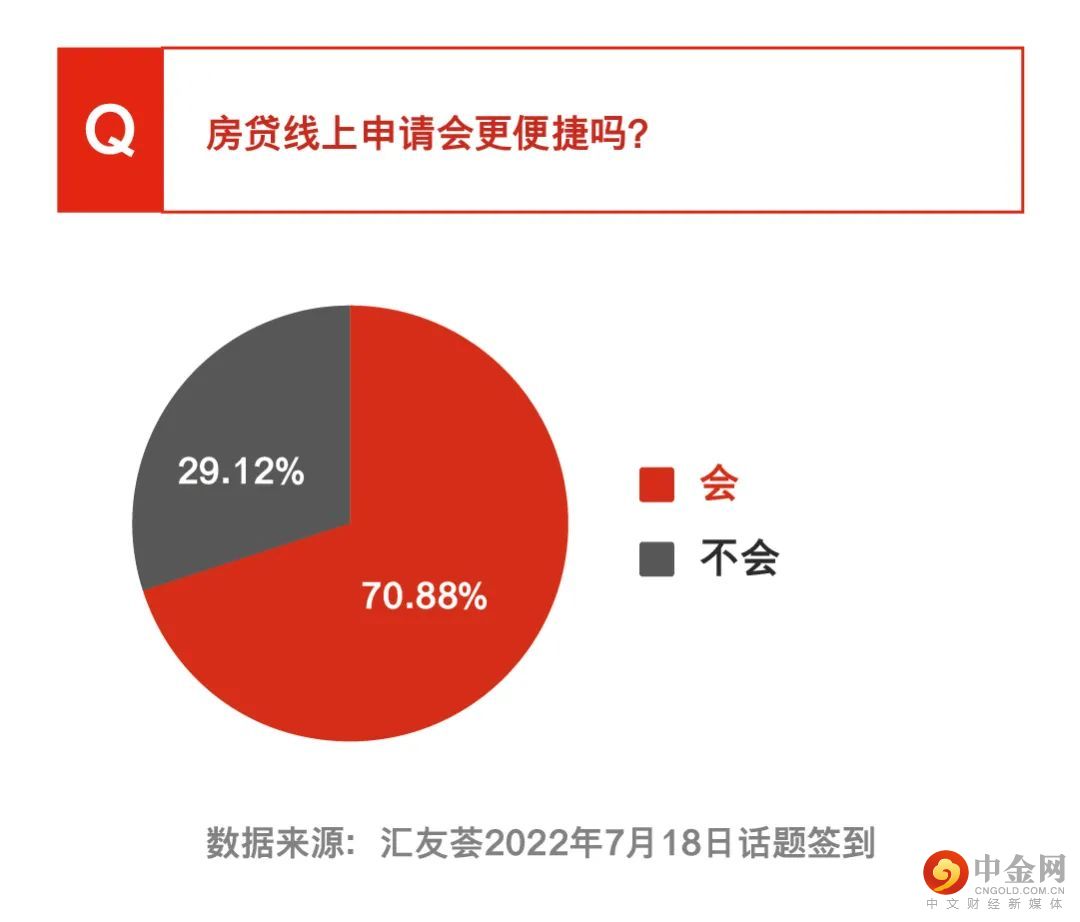 那么,对于已经决定抓住机会的人来说,自然是要尽可能的研究房贷相关的知识。对于房产交易的税费、不同银行利率等问题要有一定的了解,算明白各种费用才能更好的保证自己的财富安全。此外,如果购买的不是现房,还需要时时关注工程动向;如果购买的是二手房,还需要防范道德风险,了解房屋质量。在摸熟摸透其中要领后,可进行房贷申请。如果想要省事省力不出门就把事情做好,还可以选择线上申请,快人一步拥有温馨的家。在过往的调查中,70.88%的受调查者表示线上申请会更便捷,29.12%的受调查者表示线上申请并不会。