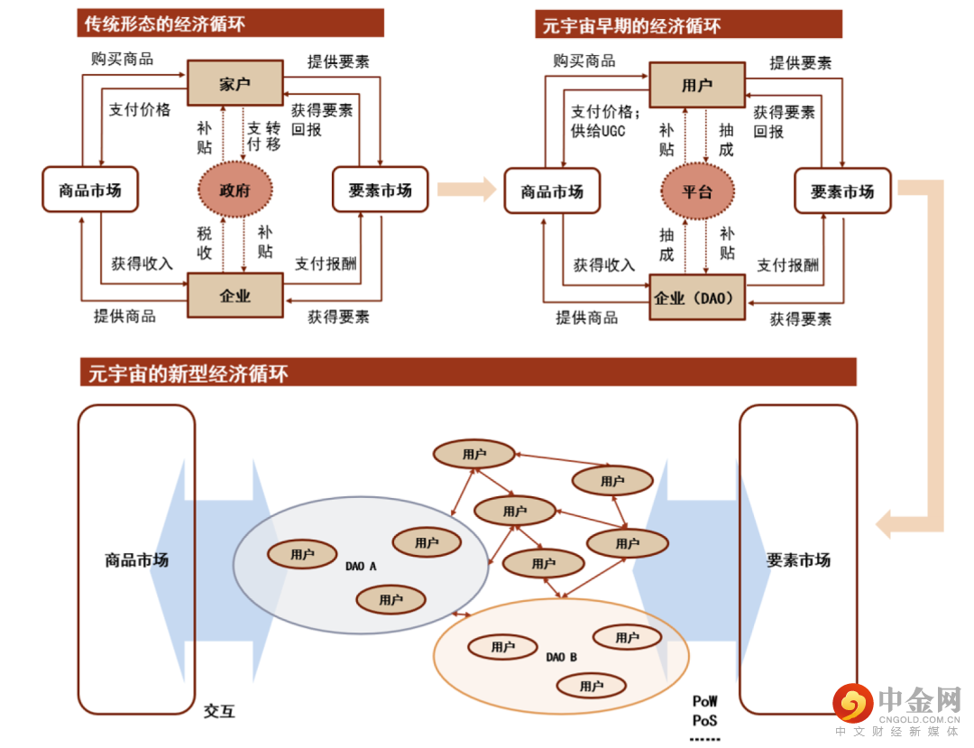去中心化也重塑了元宇宙经济体系中的供需双方,用户分别代替企业、家庭单位成为主要的生产单元、消费单元。