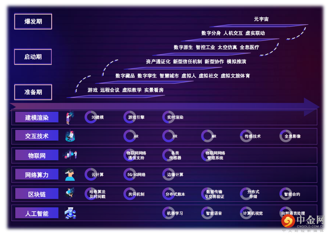 资料来源:Gartner,邢杰、赵国栋等:《元宇宙通证》(2021),Deloitte,清华大学《元宇宙发展研究报告2.0版》,中金公司研究部