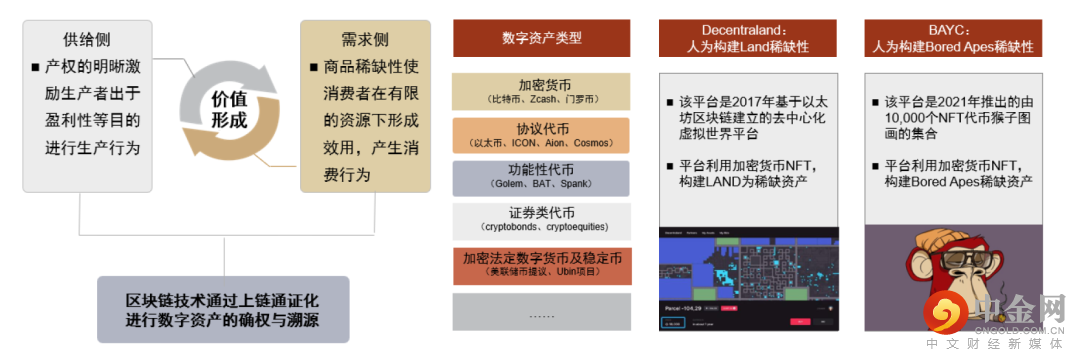 元宇宙中的价值形成功能通过设定产权实现,人为构建数字世界中的稀缺性,创造了供给与需求,是形成经济循环的前提条件。