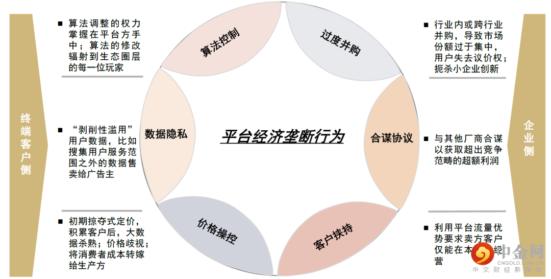 资料来源:尹振涛, 陈媛先, 徐建军:《平台经济的典型特征、垄断分析与反垄断监管》(2021),李勇坚《互联网平台寡头垄断:根源、影响及对策》(2021),中金公司研究部