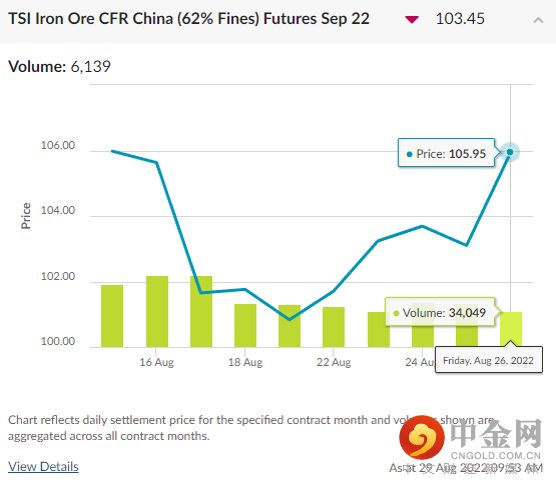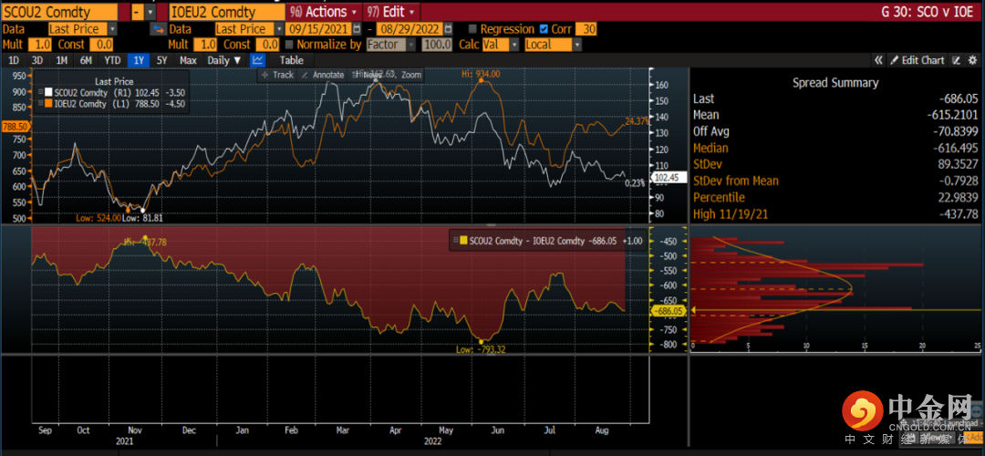 DCE大商所铁矿09月/22年 - SGX新交所铁矿09月/22年