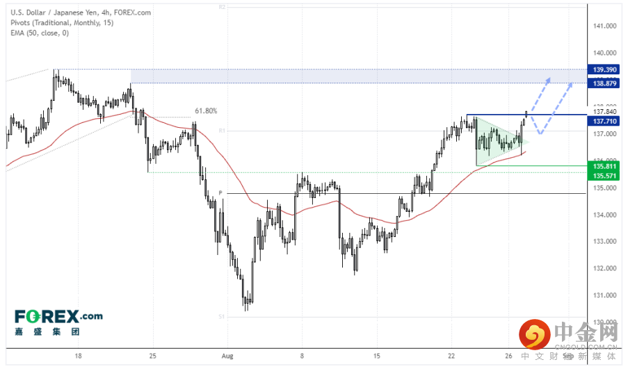 美元继续“高高在上”,得到鲍威尔在杰克逊霍尔经济年会上的强硬演讲的提振。