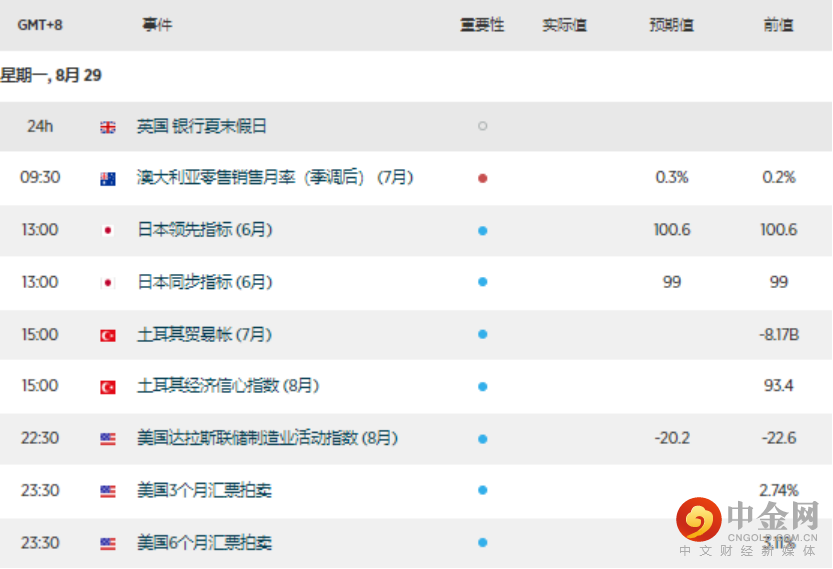 澳大利亚定于09:30发布的零售销售备受瞩目。