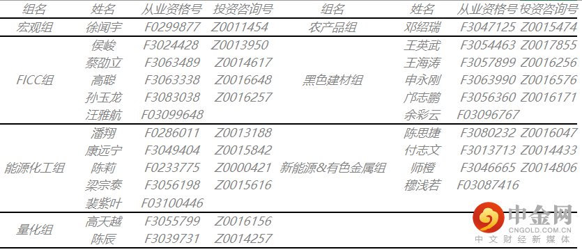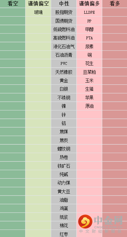 注:上图所有品种观点为主力合约的短期观点,具体以官网报告为准