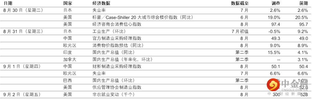 预期8月份非农就业职位仍将达到300,000个,增长步伐稳健。这将使失业率保持在3.5%的超低水平,在经济受挑战下依然稳定。虽然数据符合预期,但近期的劳动市场指标反映近月有一些回软迹象。
