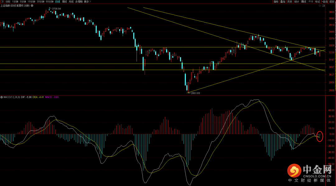 大盘早盘跳空低开后出现三十分钟底背驰结构出现反抽,目前已经再次来到前期下降趋势线附近,注意观察量能的变化,在没有量能的配合下大概率无法出现突破走势,注意观察月底可能出现的变盘窗口。