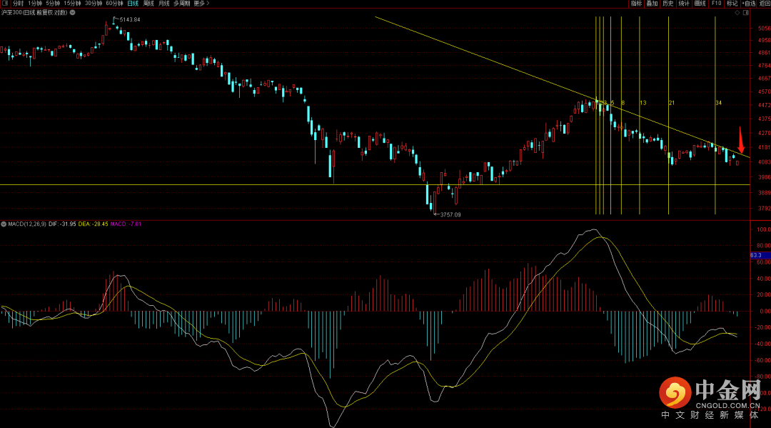 沪深300跳空低开后维持震荡结构,目前依旧还有反弹力度,观察4105是否能够突破,一旦无法突破就可能会再次快速下杀,届时结构将复杂化,后续调整周期大概率出现延长。