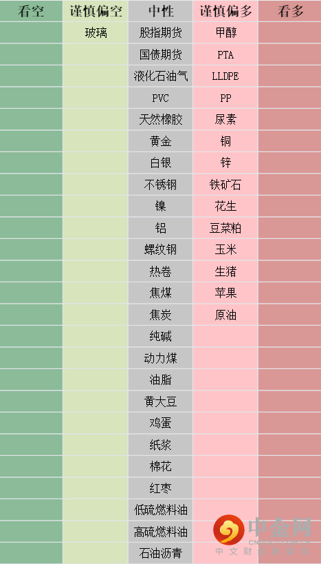 注:上图所有品种观点为主力合约的短期观点,具体以官网报告为准