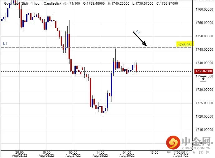 可以部署在$1,746美元左右建立淡仓盘,短线看淡金价一线至$1,709美元水平后止赚,止损在$1,754美元。