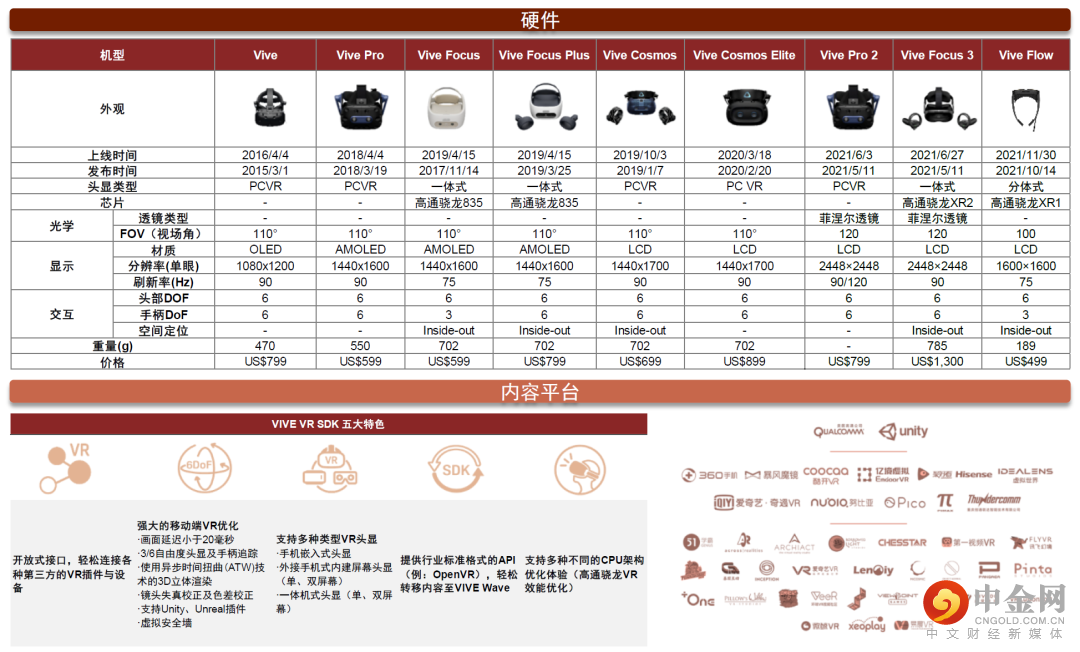 硬件方面:HTC布局企业级与消费级硬件,并持续进行产品迭代。