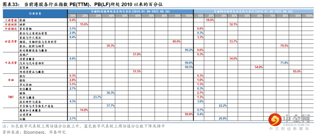 A/H股分行业估值