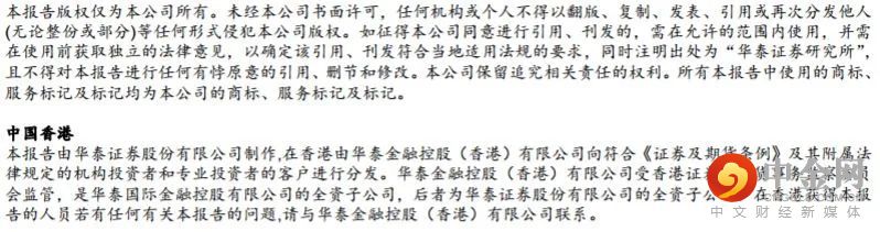 本公众号版权仅为华泰证券所有,未经华泰证券书面许可,任何机构或个人不得以翻版、复制、发表、引用或再次分发他人等任何形式侵犯本公众号发布的所有内容的版权。如因侵权行为给华泰证券造成任何直接或间接的损失,华泰证券保留追究一切法律责任的权利。华泰证券具有中国证监会核准的“证券投资咨询”业务资格,经营许可证编号为:91320000704041011J。