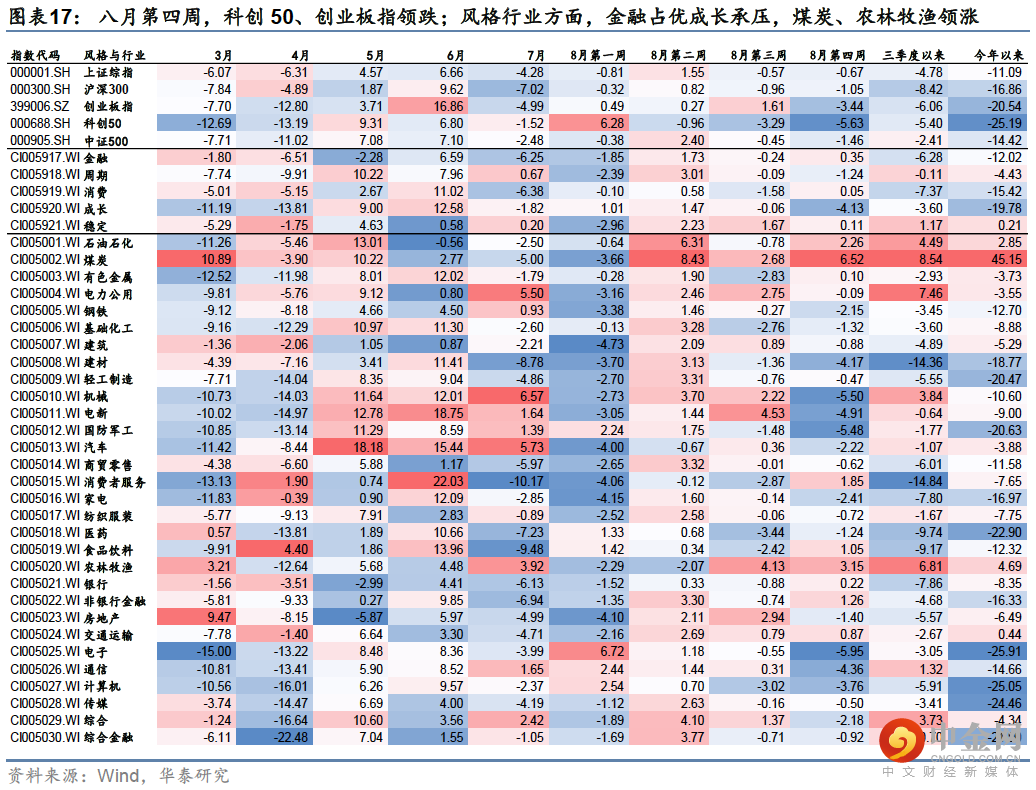 杰克逊霍尔央行年会后,美股波动率继续回升,我们结合历史熊市跌幅及当前美股DDM三因子位置,对美股二次下行风险进行了定量估算,预计标普500距离本轮熊市底部仍有较大的下行风险,关键市场底择时时点为,联储货币政策口吻转向时点(预告加息基本到位),11月初美国中期选举可能是政策窗口。对风格切换的思考需搭配大势研判,在外围波动率趋势上升环境下,投资者对安全边际的需求将阶段性超过进攻需求,我们建议适当提升大盘价值及高股息板块权重,主动进行风险对冲,方向为农业、能源基建等。但从中期视角看,下跌可能带来优质成长股较好的介入窗口,可择机配置。