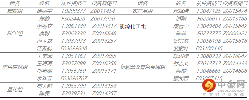 注:上图所有品种观点为主力合约的短期观点,具体以官网报告为准